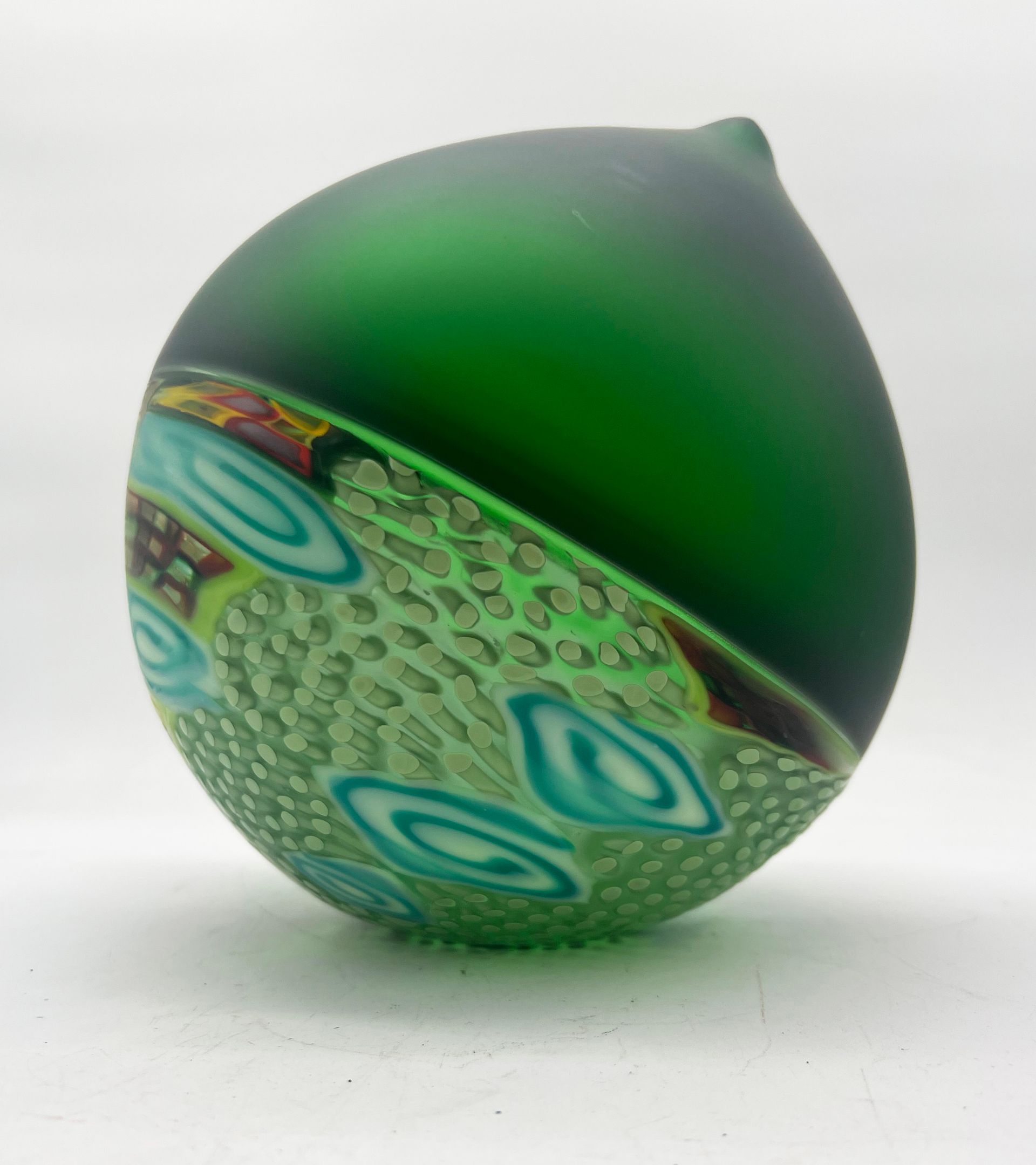 George Kennard is a seasoned glass artist and a prominent member of the Corning glass making community. Since 2001, he has been instrumental in both instructing and demonstrating glassblowing techniques at The Studio, as well as creating his own designs. George enjoys the limitless opportunities for creating with molten glass and is renowned for his large-scale incalmo works, a technique where two blown glass bubbles are joined to create distinct bands of color. He has collaborated with teams of up to 10 glassblowers to produce some of his most notable large-scale pieces, including a life-sized snow family and the world’s largest glass pumpkin .